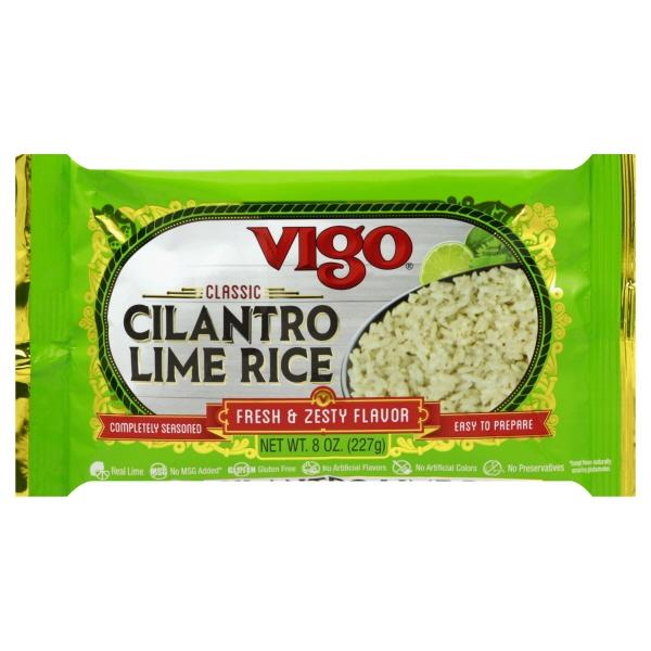 Vigo Cilantro Lime Rice made with real lime is a zesty, flavorful accompaniment to most any meal. In addition to serving with Mexican foods, it also pairs nicely with grilled fish or seafood, chicken and pork. Versatile and delicious and with only a 20 minute cook time, Vigo Cilantro Lime Rice is perfect for today's time conscious and discerning consumers. Features and Benefits ⢠Made with real lime and cilantro ⢠Fresh and zesty flavor ⢠Completely seasoned ⢠No artificial flavors, colors, or preservatives ⢠Gluten free and no MSG added ⢠Easy to prepare ⢠20 minute cook time ⢠Pairs nicely with grilled fish, seafood, chicken and pork